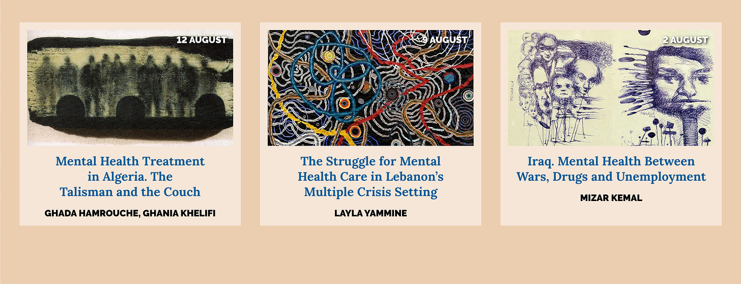 长时间的政治冲突和战争(巴勒斯坦、叙利亚、也门、伊拉克)导致了广泛的创伤和心理健康问题,经济形势的恶化则加剧了焦虑和抑郁障碍。此外,占主导地位的父权制令妇女成为男人、社会、宗教和政治经济体系的奴隶,“这严重压在所有人身上”,这种痛苦可能导致自杀行为的频率增加。与此同时,阿拉伯地区的精神药物的消费也在上升,而心理健康服务的基础设施和护理不足;阿拉伯世界的文化和社会观念使得心理健康问题常常被污名化,难以被公开讨论和解决。针对上述问题,阿拉伯世界独立媒体网络Orient XXI决定专门撰写系列主题文章。